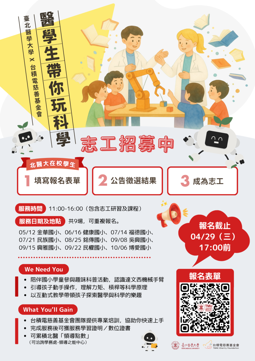 【北醫大 × 台積電慈善公益活動】志工招募資訊